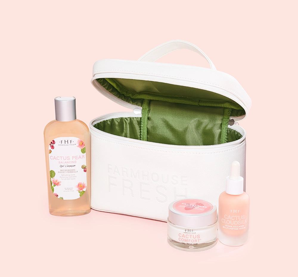 Three full size products + a vegan leather cosmetic bag