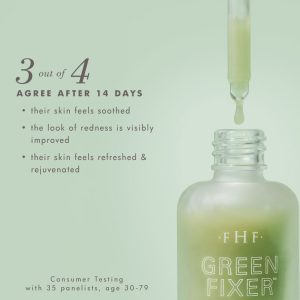 Green Fixer™ Calming Elixir Serum: Use morning and evening on cleansed skin. Place small dots around your face, outer and under eye areas and neck, then smooth in. For dry skin, follow with your favorite moisturizer.
