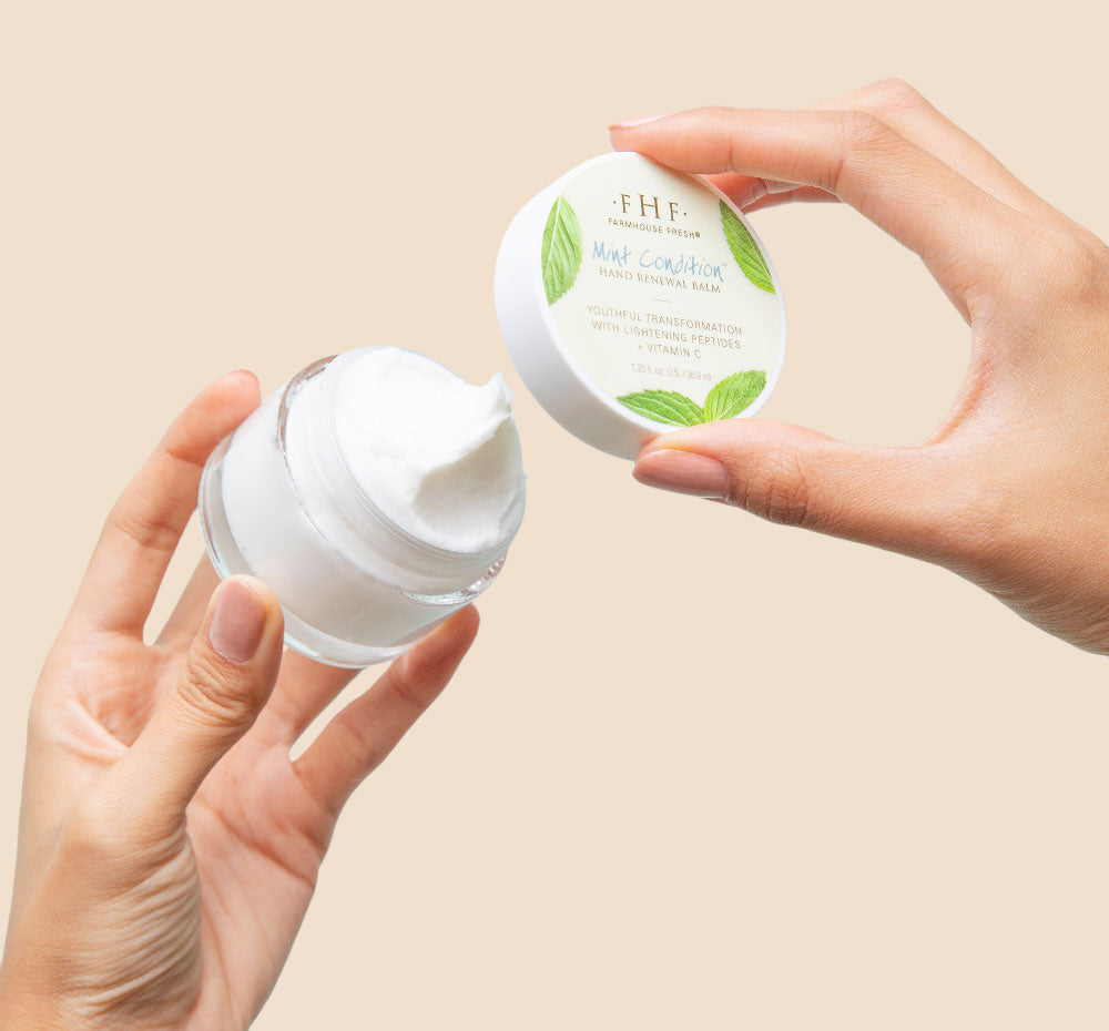 Why you’ll love it:This velvety balm wraps your hands in a luscious blend of moisture-infusing hyaluronic acid, vitamin C and an advanced lightening peptide – making them look and feel incredible! It deeply hydrates and soothes dry, cracked skin with buttery, wholesome ingredients like macadamia nut oil, shea butter and cooling spearmint extract grown on our farm. You’ll see an immediate difference as your hands become soft, smooth and visibly younger-looking!