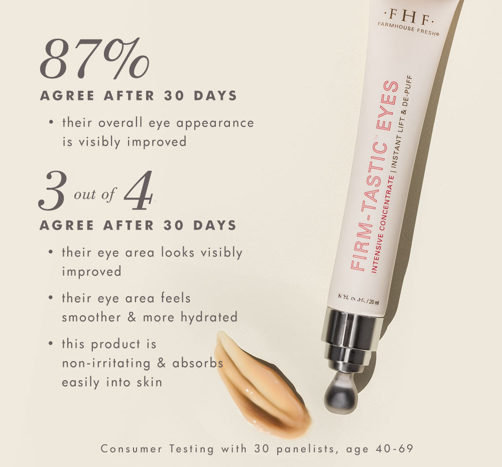 INSTANT EYELIFT: Firm-Tastic™ Eyes Intensive Concentrate is packed with antioxidant-rich plant extracts, including our exclusive cranberry bio-peptide & sea plant ferment, plus restorative retinol – so tired-looking eyes look refreshed, well-rested and more awake in a moment’s notice. See the difference as your eyes get a super-swift lift!
