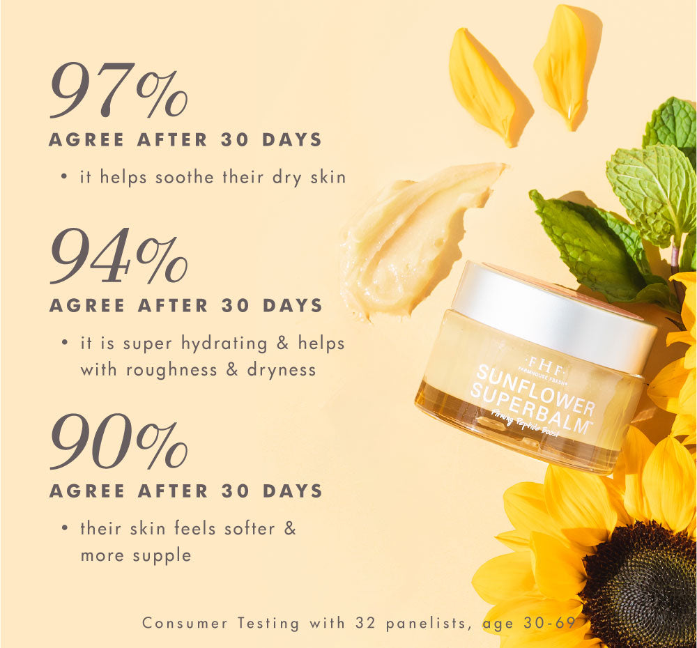 Consumer tests wow’ed: 97% agree it helps soothe their dry skin, while 94% agree it is super hydrating and helps with roughness and dryness. See the inset (left) for full study details!