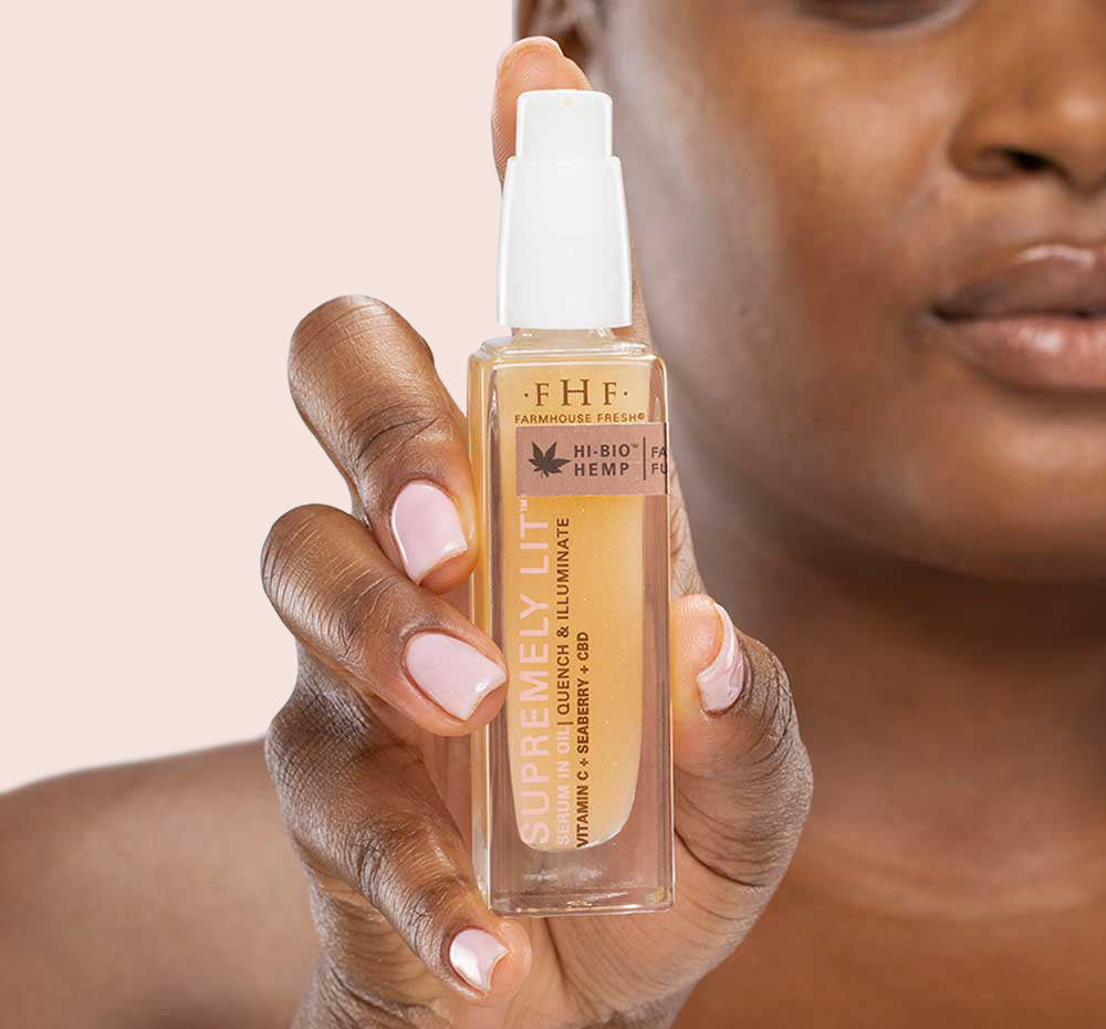 Why you’ll love it: Supremely Lit Serum-in-Oil is wondrous. It’s velvety rich and infused with vitamins C & E, seaberry oil flush with Omega 7 & 9 fatty acids, and our proprietary Hi-Bio® fast absorbing, full-spectrum hemp with cannabinoids and vital antioxidants to replenish skin’s texture & bounce.