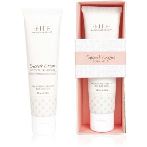 Sweet Cream Body Milk is infused with a blend of natural oils that provide lasting softness to skin: vitamin E-rich rice bran oil, jojoba seed oil, sweet almond, avocado and sesame. The formulation also includes our FHF-grown heirloom organic cucumber extract with soothing antioxidants.
