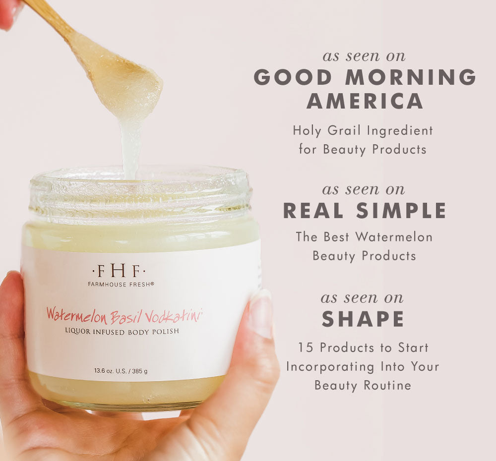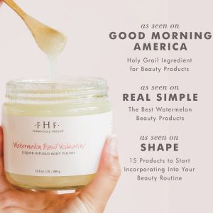 Why you’ll love it: The naturally high vitamin-rich watermelon seed oils and vitamin E content in our rice bran oil hydrate skin, while the coarse salt and sugar grains slough away dead skin cells. Leaves a glistening, non-greasy finish for a smooth day at the beach!