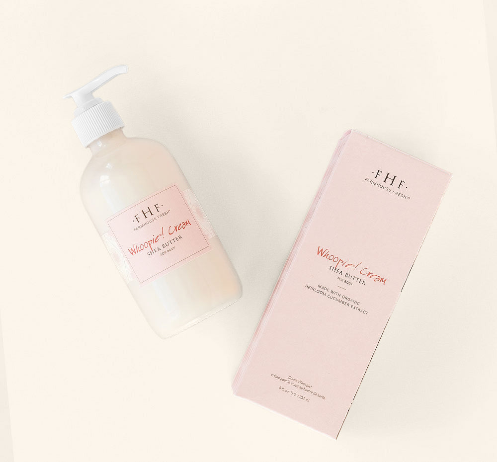 Deeply Nourish:This rich moisturizing cream is a house-made spa butter blend of shea butter, vitamin E, and omega-6 rich U.S.-grown non-GMO soybean oil to calm even the severest of dry skin, without a hint of a greasy feel! Lightly scented with scrumptious white velvet cream and moist layer cake inspired by the famous comfort desserts – Whoopie Pies. Blended with our FHF-grown heirloom organic cucumber extract with soothing antioxidants.